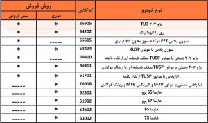 خودروهای قابل عرضه در این دوره شامل پژو 207 موتور TU3، پژو 207 با موتور TU5P و سقف شیشه‌ای، رانا پلاس با موتور TU5P، دنا پلاس دستی با موتور EF۷P و گیربکس MT6، سورن پلاس EF7 دوگانه‌سوز، سورن پلاس XU7P، ری‌را اتوماتیک، هایما S5 پرو، هایما S7 پرو، هایما 8S و هایما 7X است.